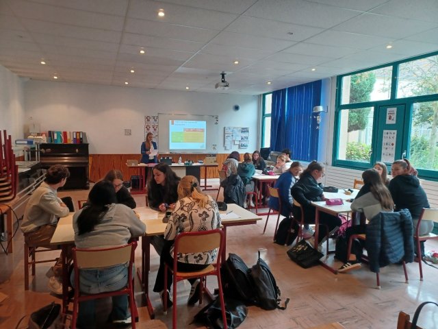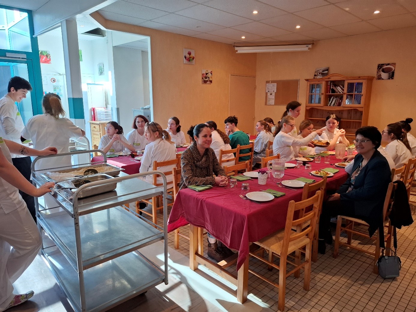 Accueil des élèves de 3ème segpa du collège Rostand –Présentation de la filière CAP Agent Accompagnement Grand Age par les élèves et partage du repas du midi servi par les élèves de CAP. Février 2024