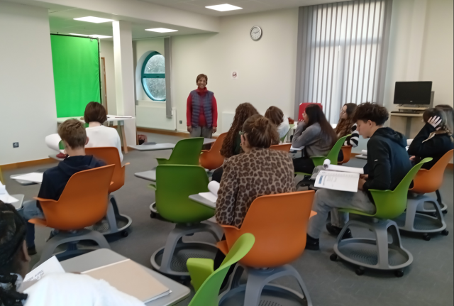 Afin d’élargir cette approche réflexive, la classe, encadrée par Mme CHEDOTAL (enseignante en Economie / Gestion) et Mme GNUVA (enseignante-documentaliste) vient tout juste de participer, ce lundi 24 novembre, à deux heures d’échanges enrichissants au CDI avec Hortense BIVIARIFENO, retraitée de l’Education Nationale ayant exercée en tant que CPE au lycée Mézeray.